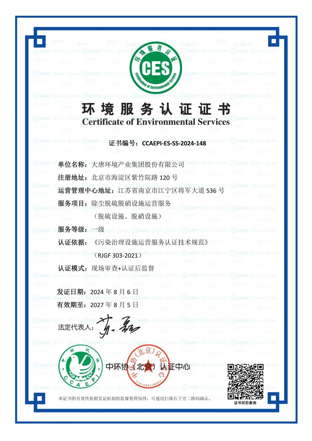 本網(wǎng)訊?10月14日,大唐環(huán)境特許經(jīng)營(yíng)分公司收到中環(huán)協(xié)(北京)認(rèn)證中心頒發(fā)的“除塵脫硫脫硝設(shè)施運(yùn)營(yíng)服務(wù)”一級(jí)服務(wù)認(rèn)證證書(shū)。這一殊榮不僅是對(duì)環(huán)境公司及分公司在脫硫脫硝領(lǐng)域?qū)I(yè)能力的肯定,更是對(duì)其長(zhǎng)期致力于環(huán)境保護(hù)事業(yè)、推動(dòng)綠色可持續(xù)發(fā)展努力的認(rèn)可。