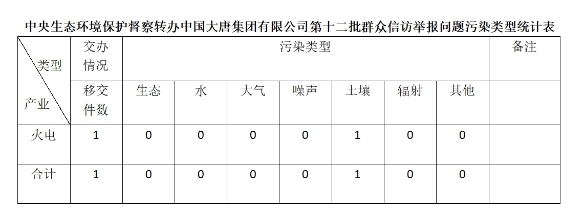 2025年6月16日,中央第七生態(tài)環(huán)境保護(hù)督察組向中國(guó)大唐集團(tuán)有限公司移交第十二批群眾信訪(fǎng)舉報(bào)件,共計(jì)1件,為來(lái)信舉報(bào),涉及土壤問(wèn)題1個(gè)。所有舉報(bào)件辦理工作已第一時(shí)間進(jìn)入調(diào)查核實(shí)辦理程序,辦理情況將按照相關(guān)要求反饋督察組,并及時(shí)向社會(huì)公開(kāi)。