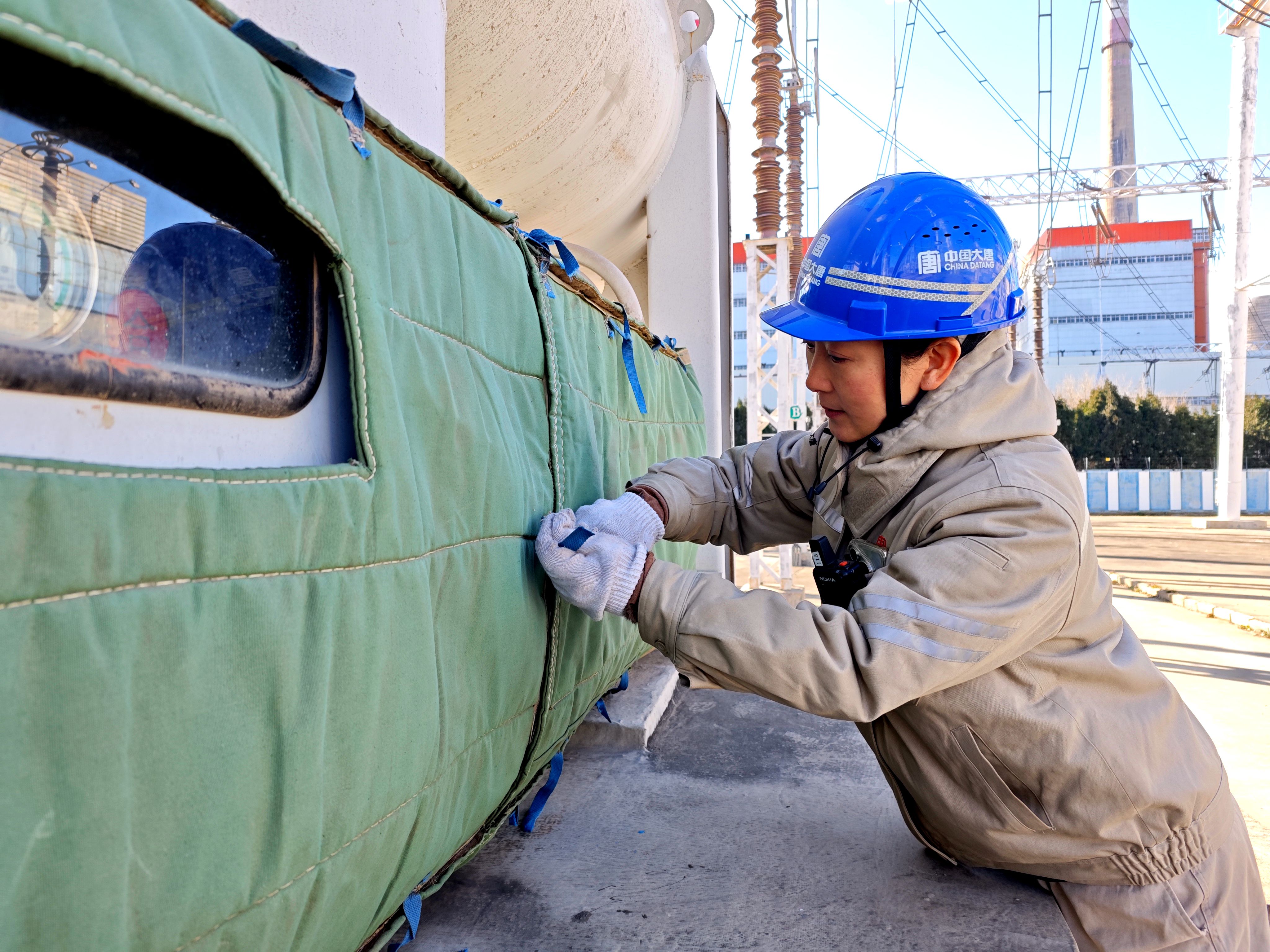 下午6點,經(jīng)過全體人員的共同努力,網(wǎng)控變電站內(nèi)關(guān)鍵開關(guān)設(shè)備全部“穿”上了定制保溫棉衣,空壓機管路也完成了保溫層加裝??粗粐?yán)密包裹的設(shè)備和管路,大家臉上露出了欣慰的笑容。