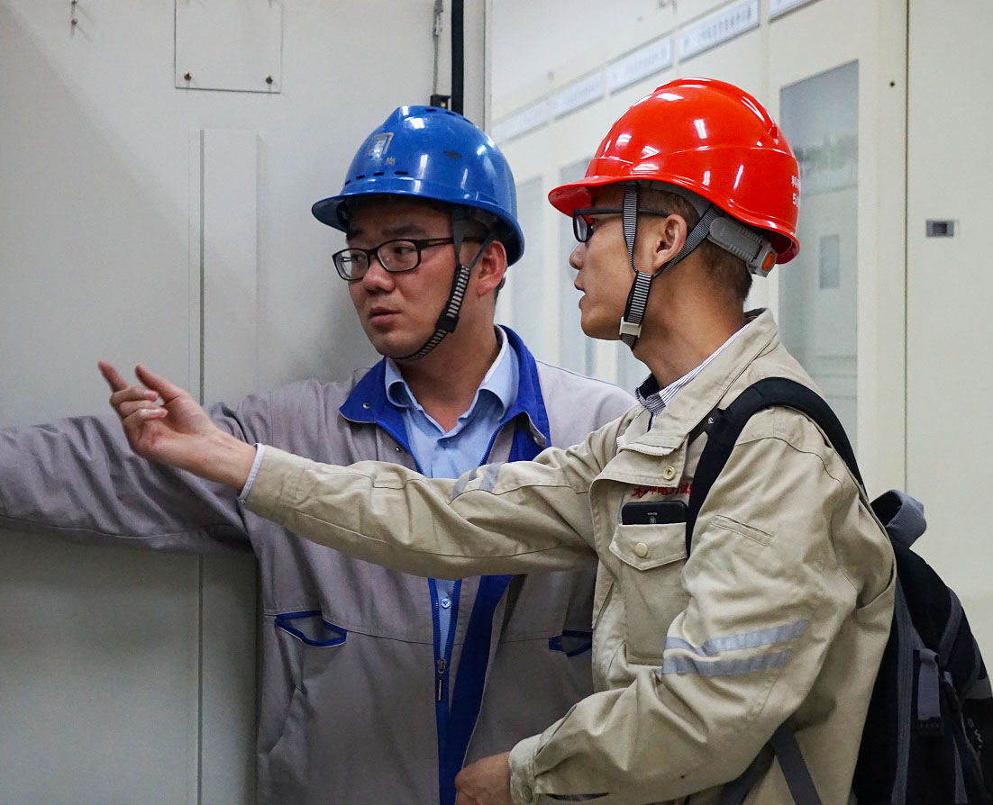 研發(fā)團(tuán)隊主要負(fù)責(zé)人在現(xiàn)場與發(fā)電企業(yè)技術(shù)人員溝通調(diào)試與操作細(xì)節(jié)