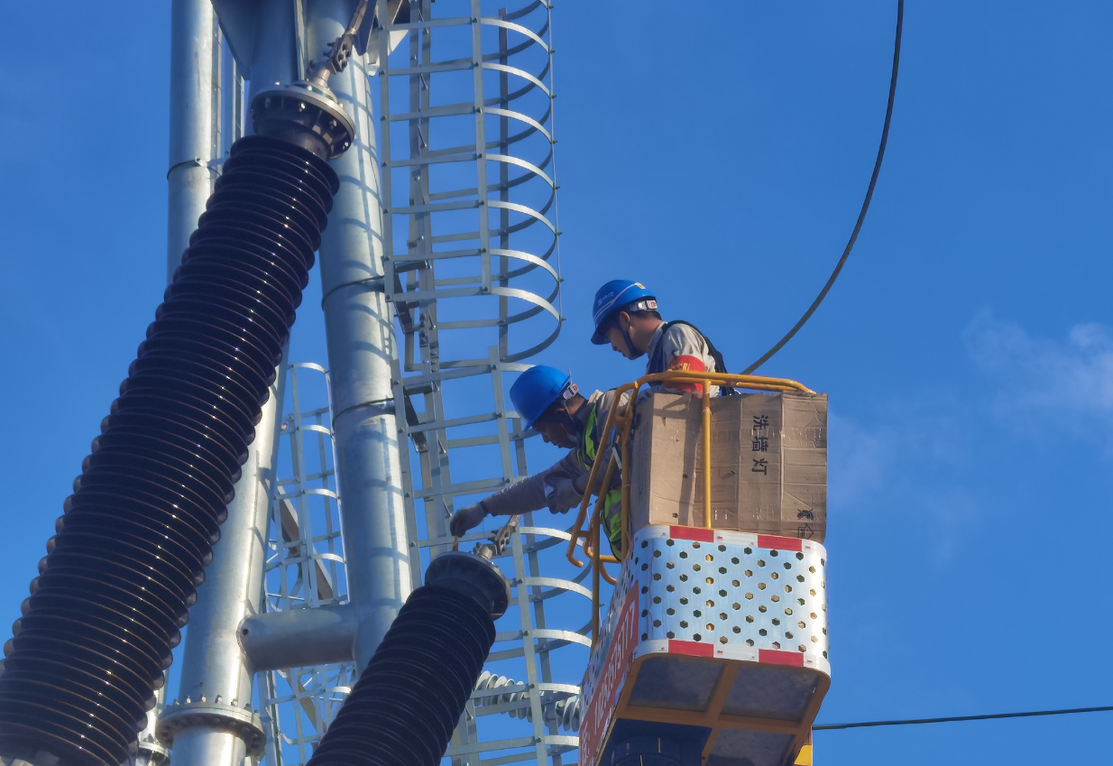 等升降車將兩人慢慢送至空中,沈啟超有些緊張,不由得口中有些干燥,他腦海中反復回憶著工作前安全專責和班長交代的工作流程和注意事項,定了定神開始工作。