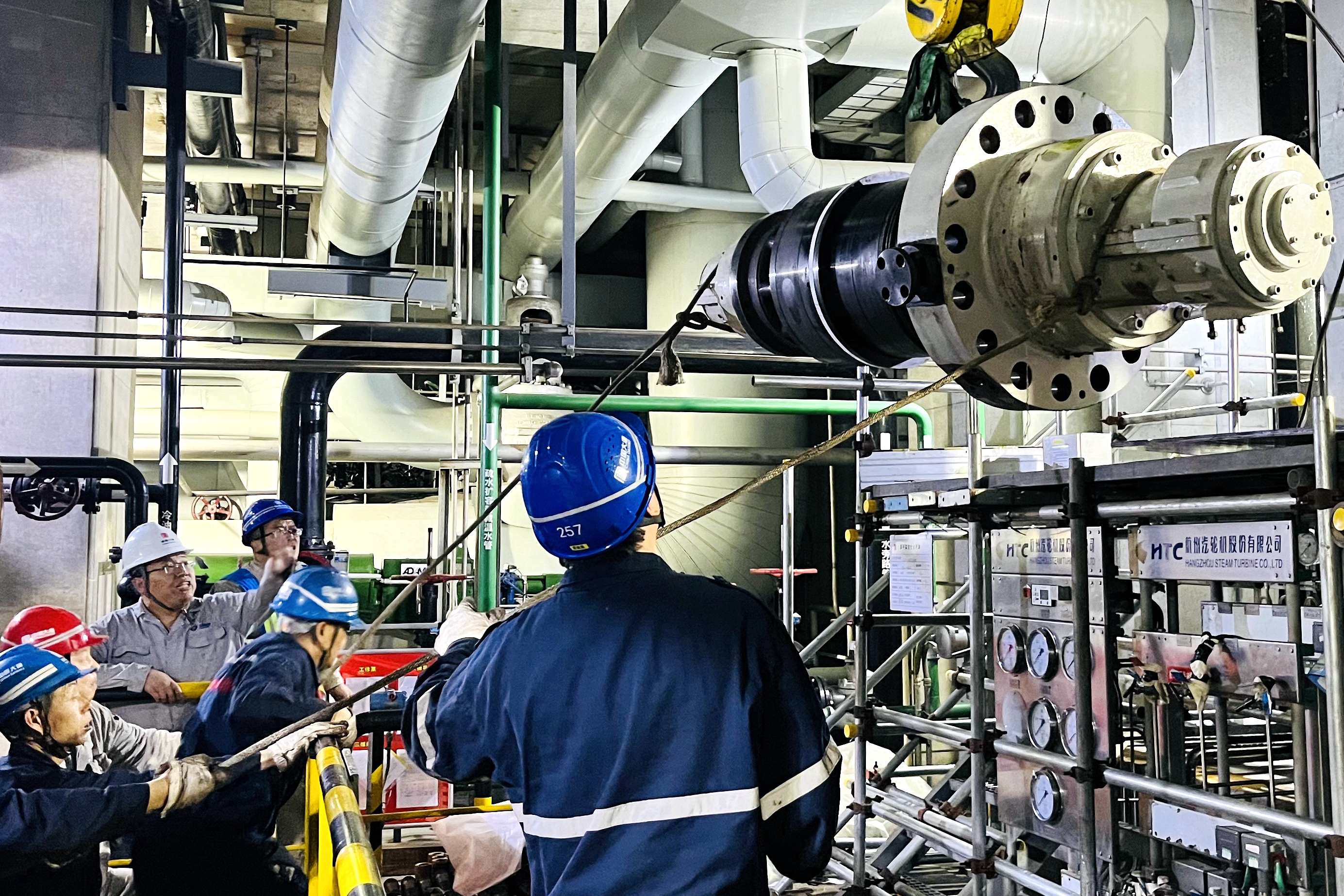 下午3點,2號機零米給水泵處,日光順著層間通道的高窗斜切進來?!捌疸^——慢著,左擺半寸!”秦嶺發(fā)電公司承攬富平熱電維檢工作的項目部汽機專工李強攥著對講機的指節(jié)泛白,安全帽檐下的眼睛緊盯著半懸的給水泵芯包。起重工武強握著吊機操作桿,指腹貼在按鈕上緩著勁:“收到,擺幅控制住了?!边@龐然大物裹著剛檢修完的金屬冷光,已吊至泵體上方,正等著“登堂入室”嚴絲無縫嵌進泵體里。