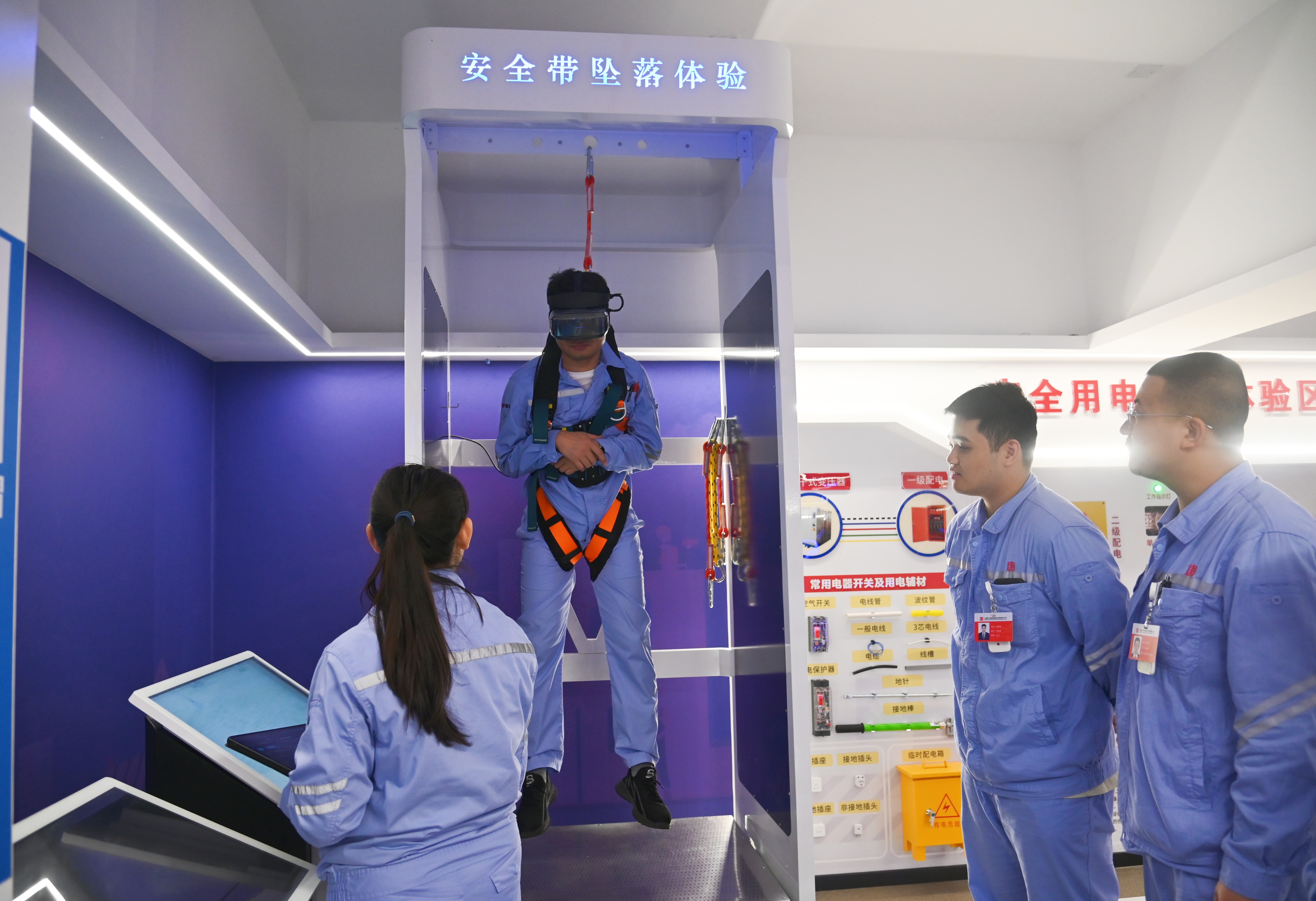 該中心設(shè)有人身事故體驗區(qū)、作業(yè)風險防控與隱患排查體驗區(qū)、有限空間作業(yè)實訓(xùn)體驗區(qū)、人身觸電體驗區(qū)、安全防護用品體驗區(qū)、應(yīng)急演練區(qū)、急救培訓(xùn)區(qū)等9個區(qū)域,采用視、聽、觸相結(jié)合的三維立體式培訓(xùn)模式,融合虛擬現(xiàn)實和多媒體互動技術(shù),模擬作業(yè)環(huán)境和事故場景。參訓(xùn)人員可以通過佩戴VR眼鏡,手持操作手柄,站立于動感體驗平臺,對現(xiàn)場各類災(zāi)害事故進行“零距離”體驗,提供可感受、可操作的實體化培訓(xùn),有效推動安全培訓(xùn)從傳統(tǒng)“說教式”向智能“沉浸式”轉(zhuǎn)型,進一步深化和提升了安全管理水平,豐富了職工安全生產(chǎn)技能、應(yīng)急處置能力培訓(xùn)“套餐”,助力本質(zhì)安全型企業(yè)建設(shè)邁出重要一步。