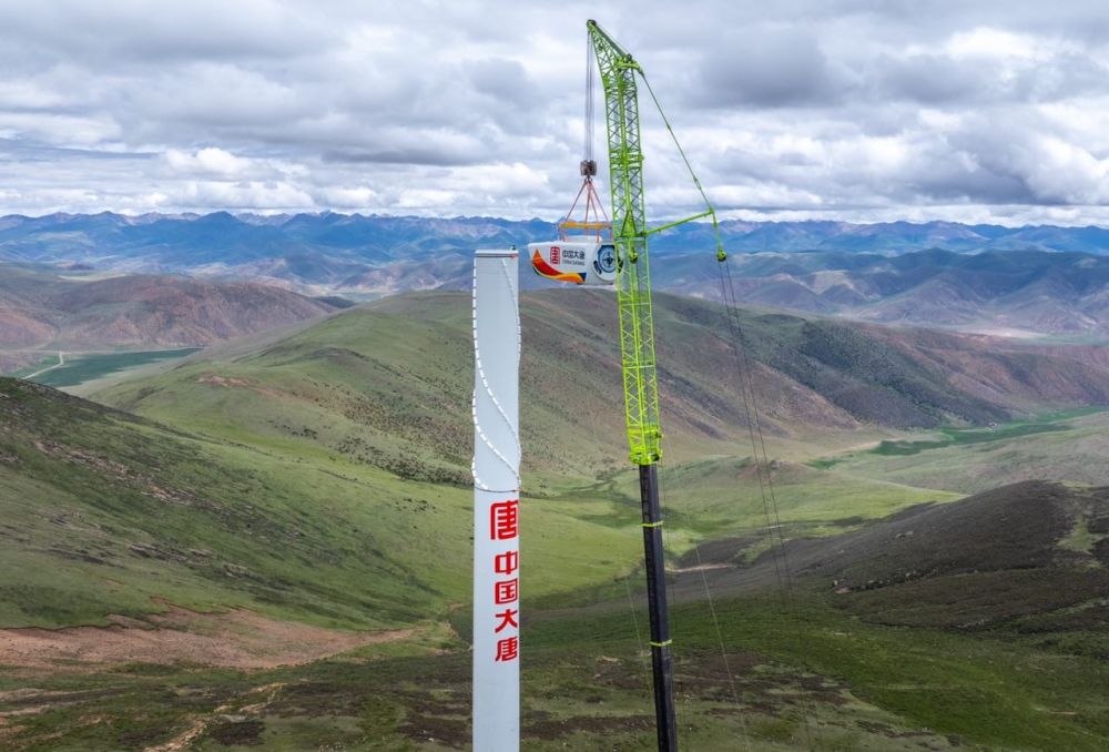 7月10日,在藏東南高原,隨著現(xiàn)場指揮員一聲令下,1800噸汽車吊將重達(dá)117噸的風(fēng)機(jī)葉輪組件緩緩吊至110米高空與機(jī)艙精準(zhǔn)對接,標(biāo)志著世界在建最高海拔風(fēng)電場——大唐西藏能源開發(fā)有限公司八宿100兆瓦保障性并網(wǎng)風(fēng)電項目首臺風(fēng)機(jī)吊裝作業(yè)順利完成,實現(xiàn)了中國大唐在藏風(fēng)電工程建設(shè)從無到有的跨越式發(fā)展,也為雪域高原增添了又一綠色能源新地標(biāo)。