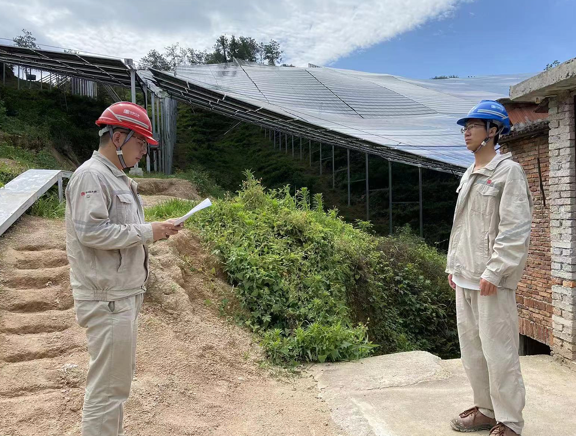 在馮剛帶領下,項目部成員大膽假設,多方論證,決定使用柔性支架安裝方式,為山地光伏建設提供新方案、新思路。