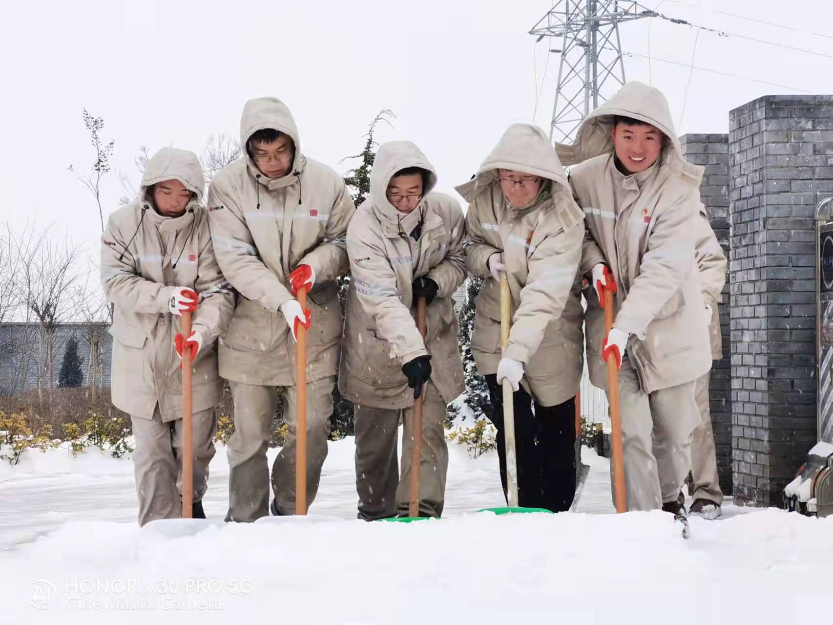 組織升壓站職工對站內(nèi)道路進行清雪。陳偉攝