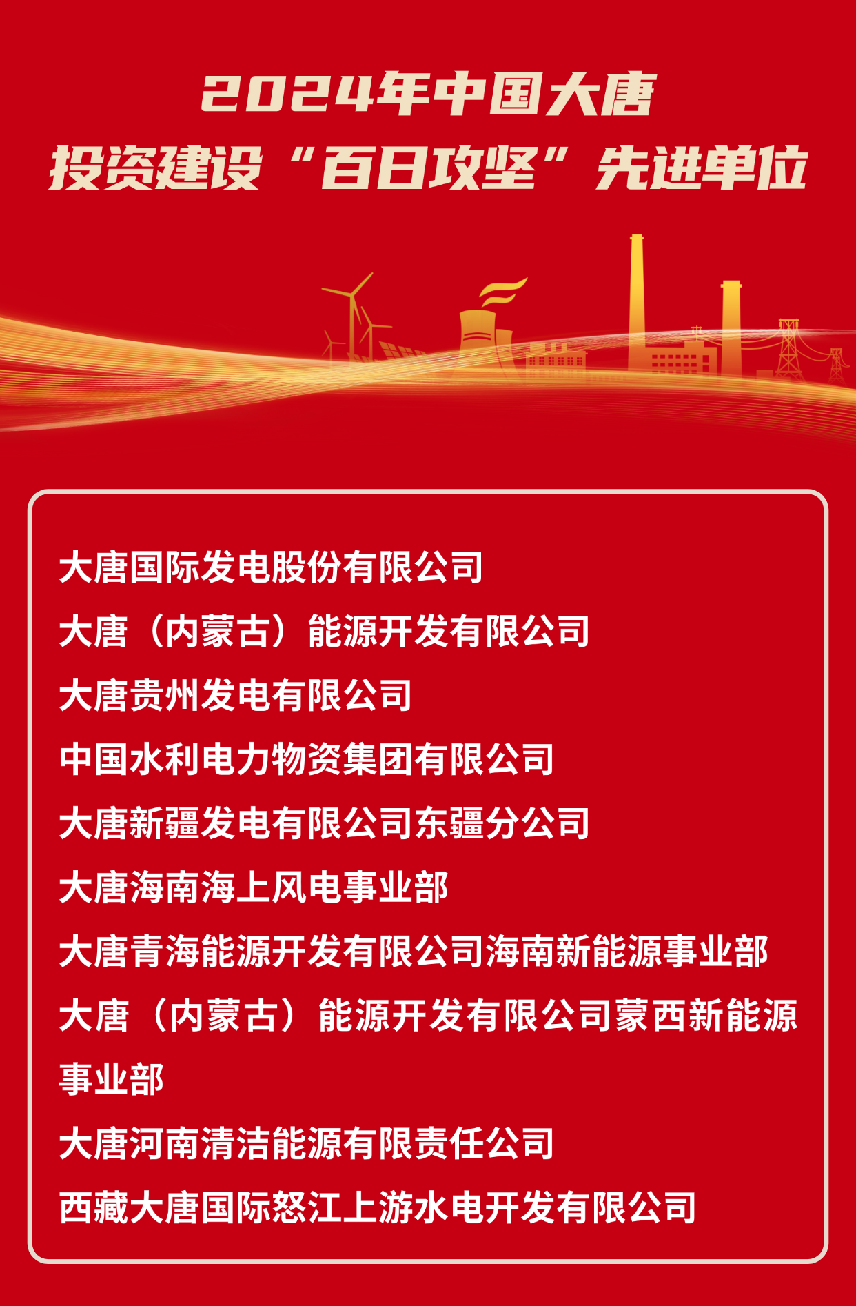 2024年中國大唐集團(tuán)有限公司投資建設(shè)“百日攻堅”先進(jìn)單位